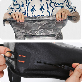 Roll-top style: A large opening for easy access. It only needs to be folded three times to achieve a waterproof IPX6 effect and is the most popular style.